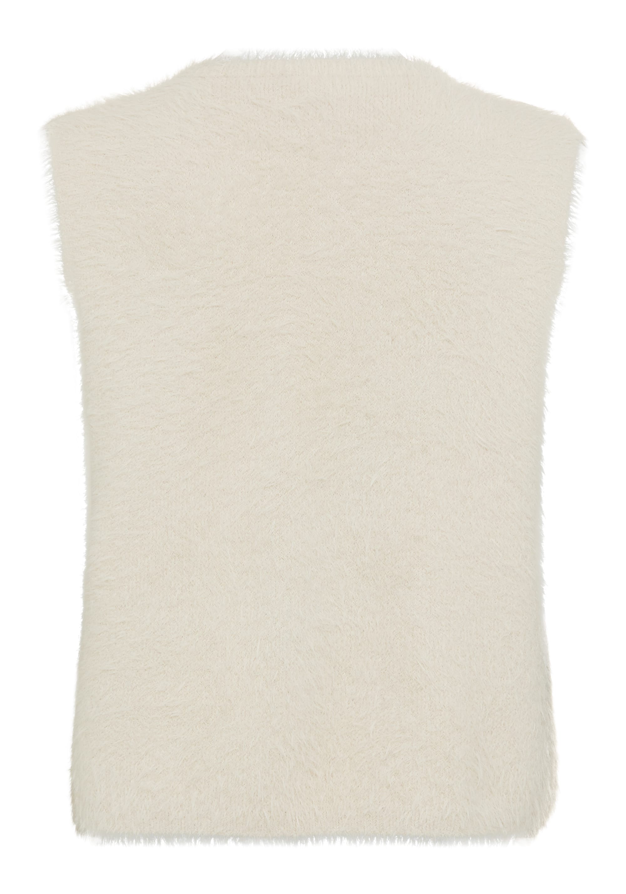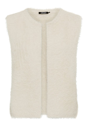 This cropped knit vest offers luxurious softness with its fluffy faux fur treatment.