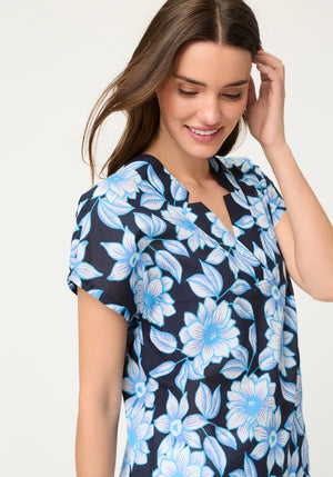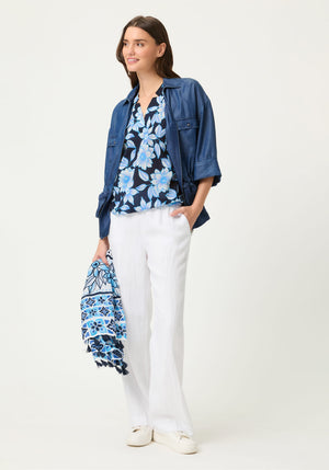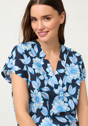 This blouse stands out with its lively yet harmonious all-over print, offering an effortlessly polished look for warm-weather days.