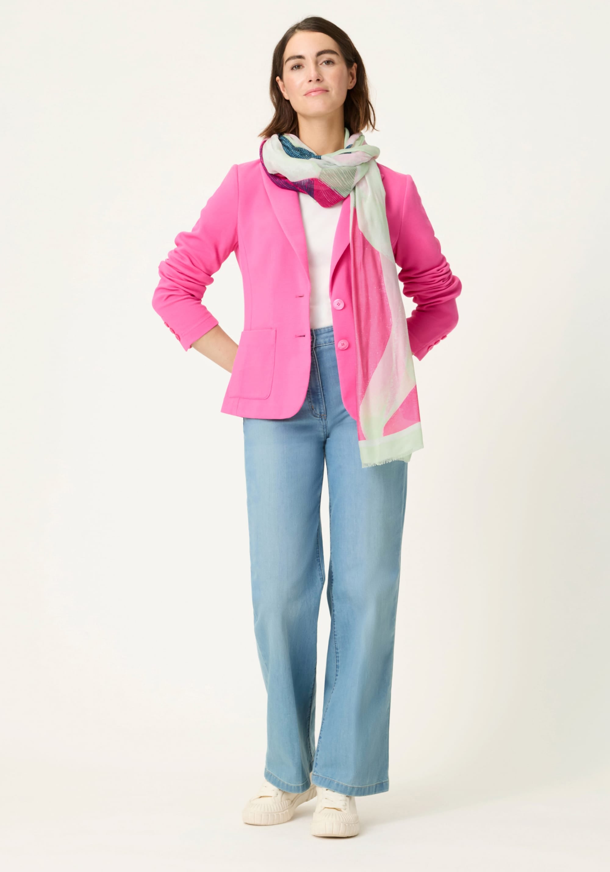 A soft, feminine finishing touch, this lightweight scarf features a decorative graphic floral panel print that instantly elevates everyday spring looks.