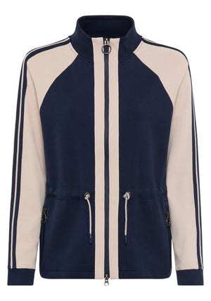 A stylish blend of comfort and sporty elegance, this straight-cut jersey knit jacket delivers a modern look with thoughtful, feminine detailing.