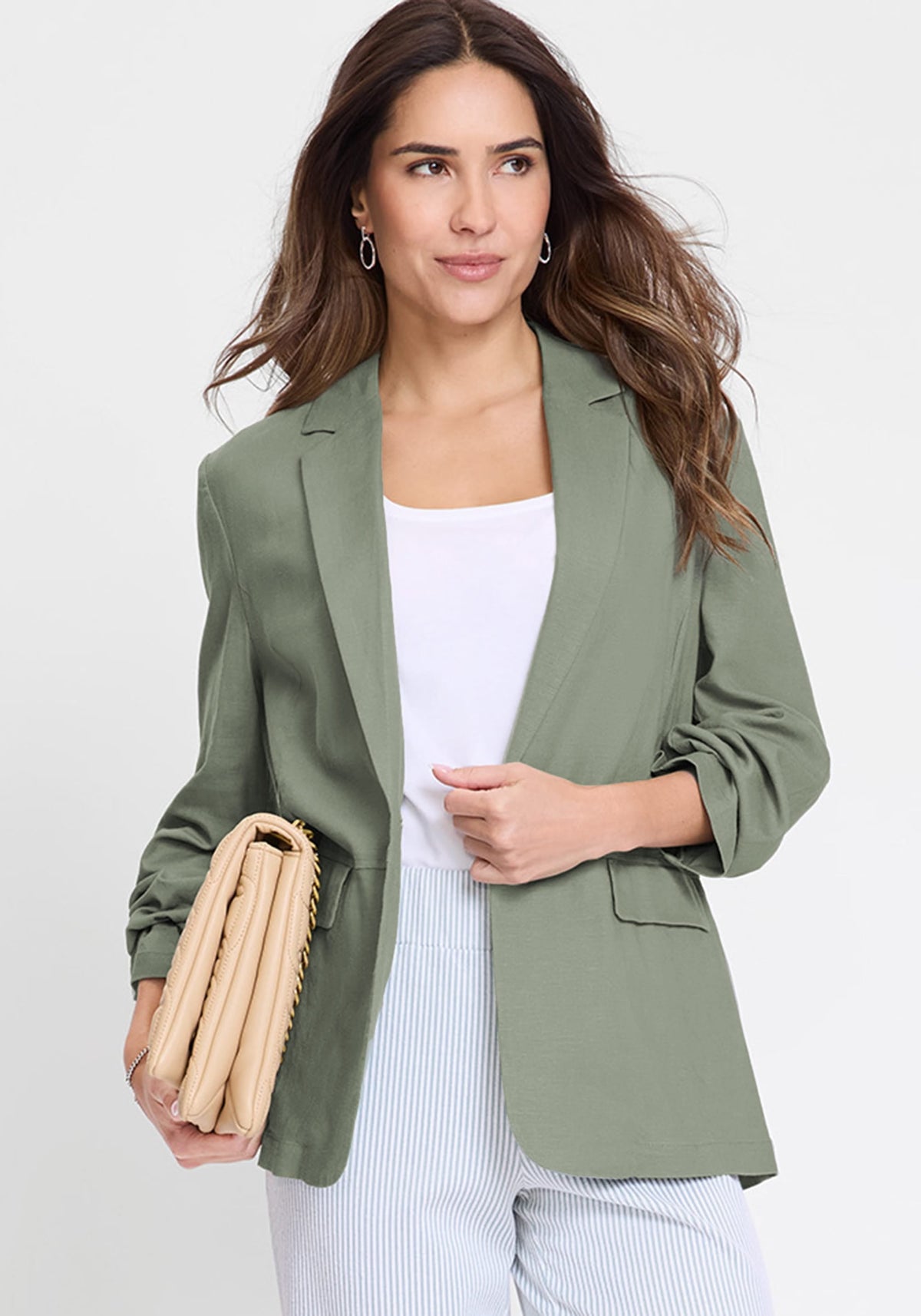 Crafted from the perfect blend of linen and viscose with just the right amount of stretch, this stylish blazer is a chic finishing touch to any outfit.