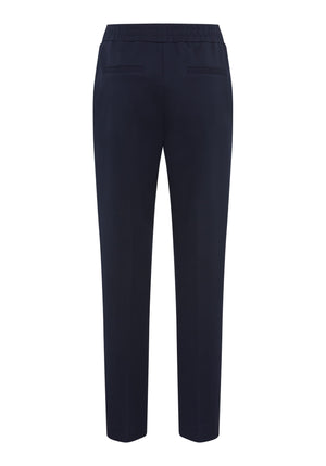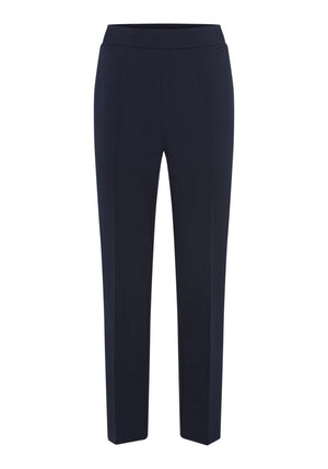 These pants feature a flat front elasticized pull-on waistband for comfort, with center front leg seams and rear welt pockets that give them a polished trouser look.