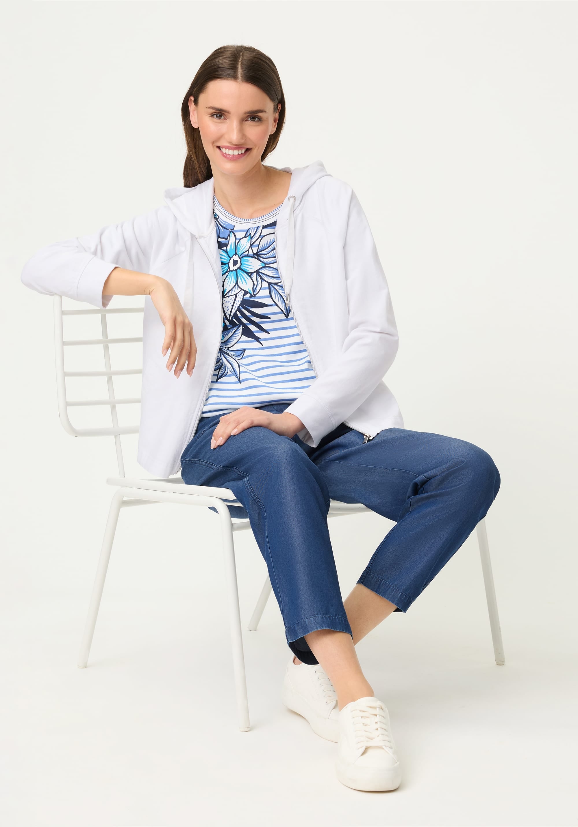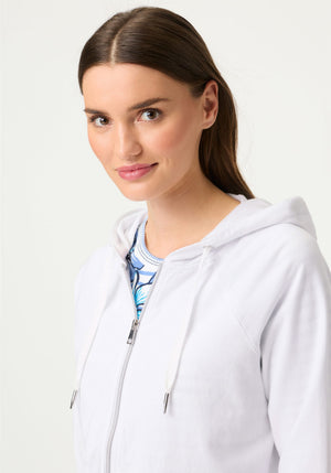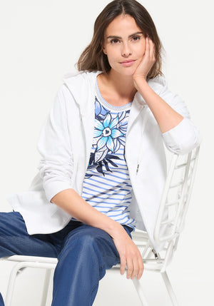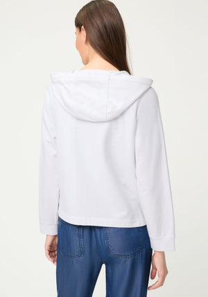 Sporty and modern, this mixed media jacket stands out with its dynamic blend of textured linen and soft jersey.