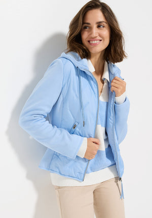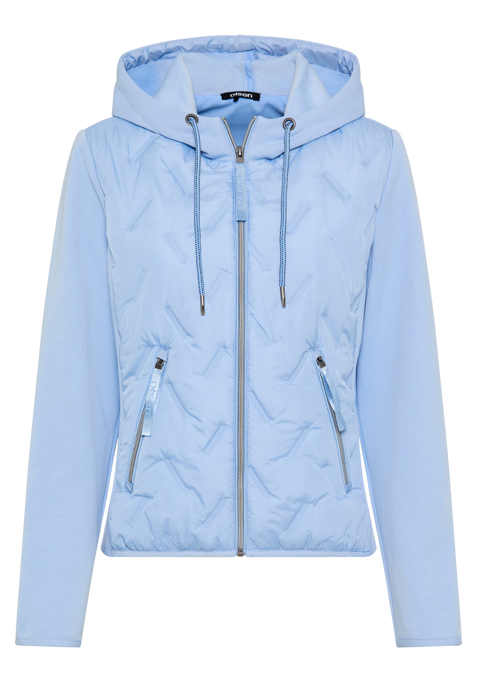 A sporty essential, this mixed-media hooded jacket offers clean lines, modern style, and everyday comfort.