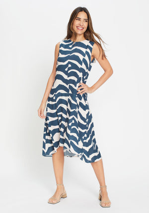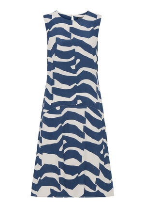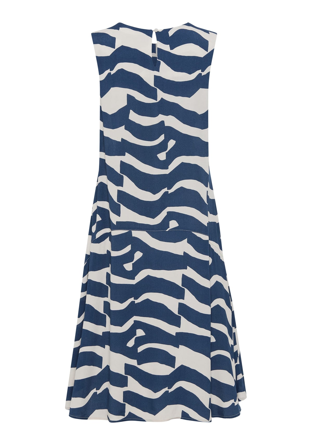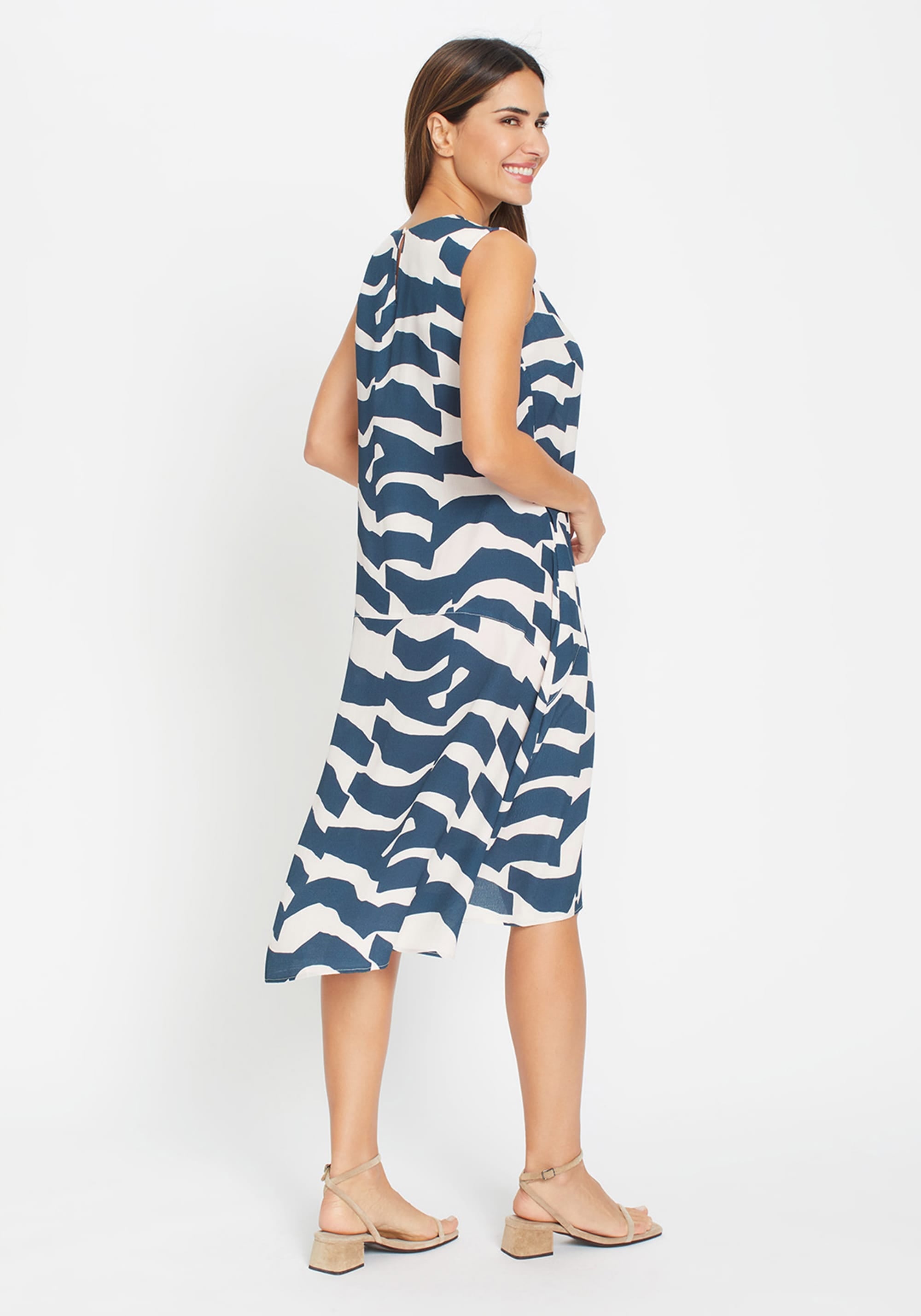 This on-trend, slightly oversized dress features a statement allover modern graphic print, creating a stunning yet relaxed look.