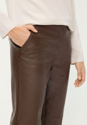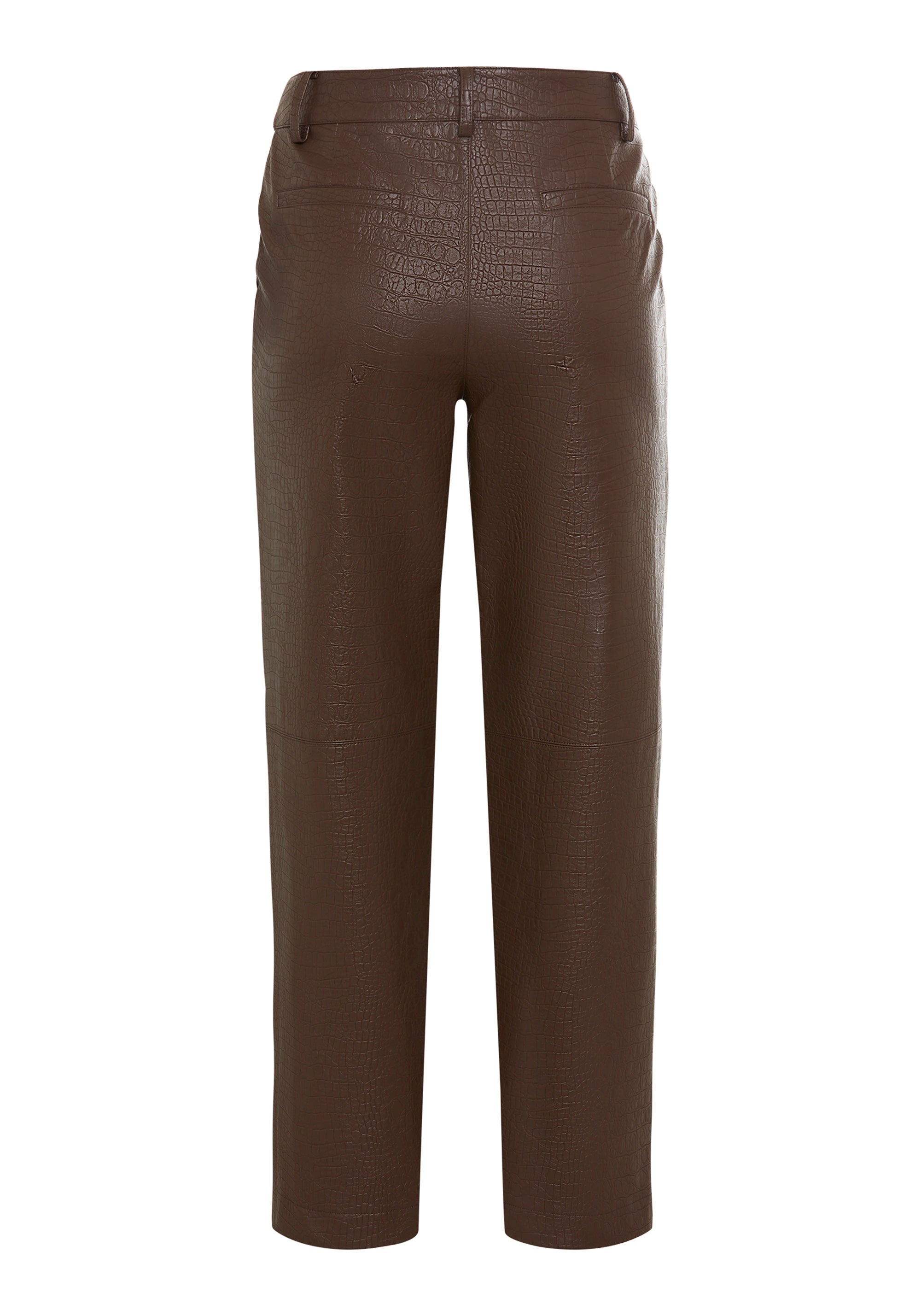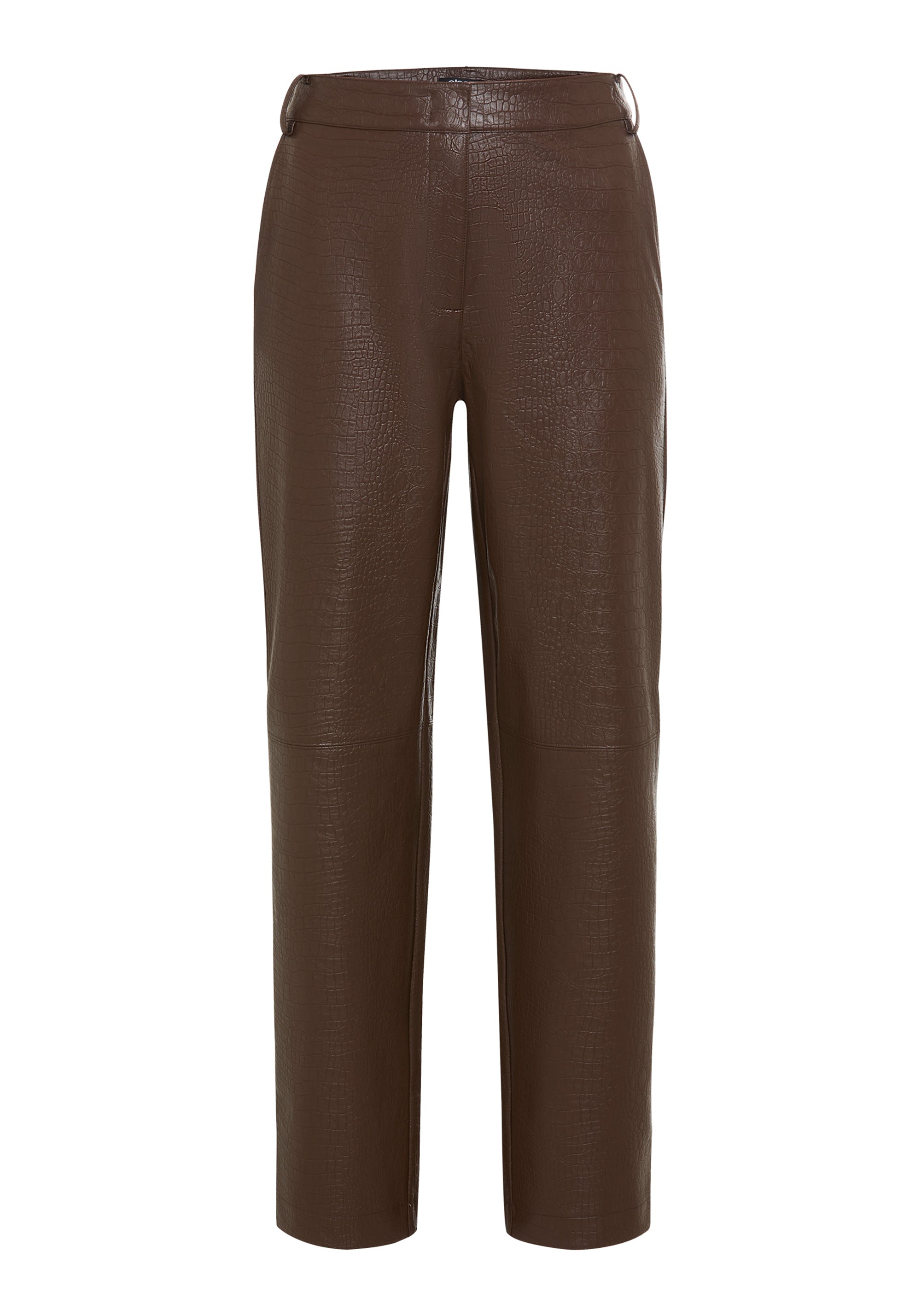 A sleek faux leather pant featuring an allover crocodile-embossed texture for a modern edge.