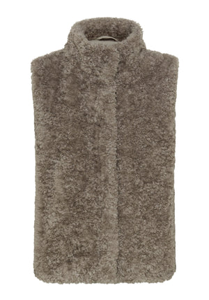 With a luxurious texture in a rich taupe shade, this teddy vest adds warmth and style to any outfit.