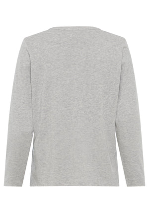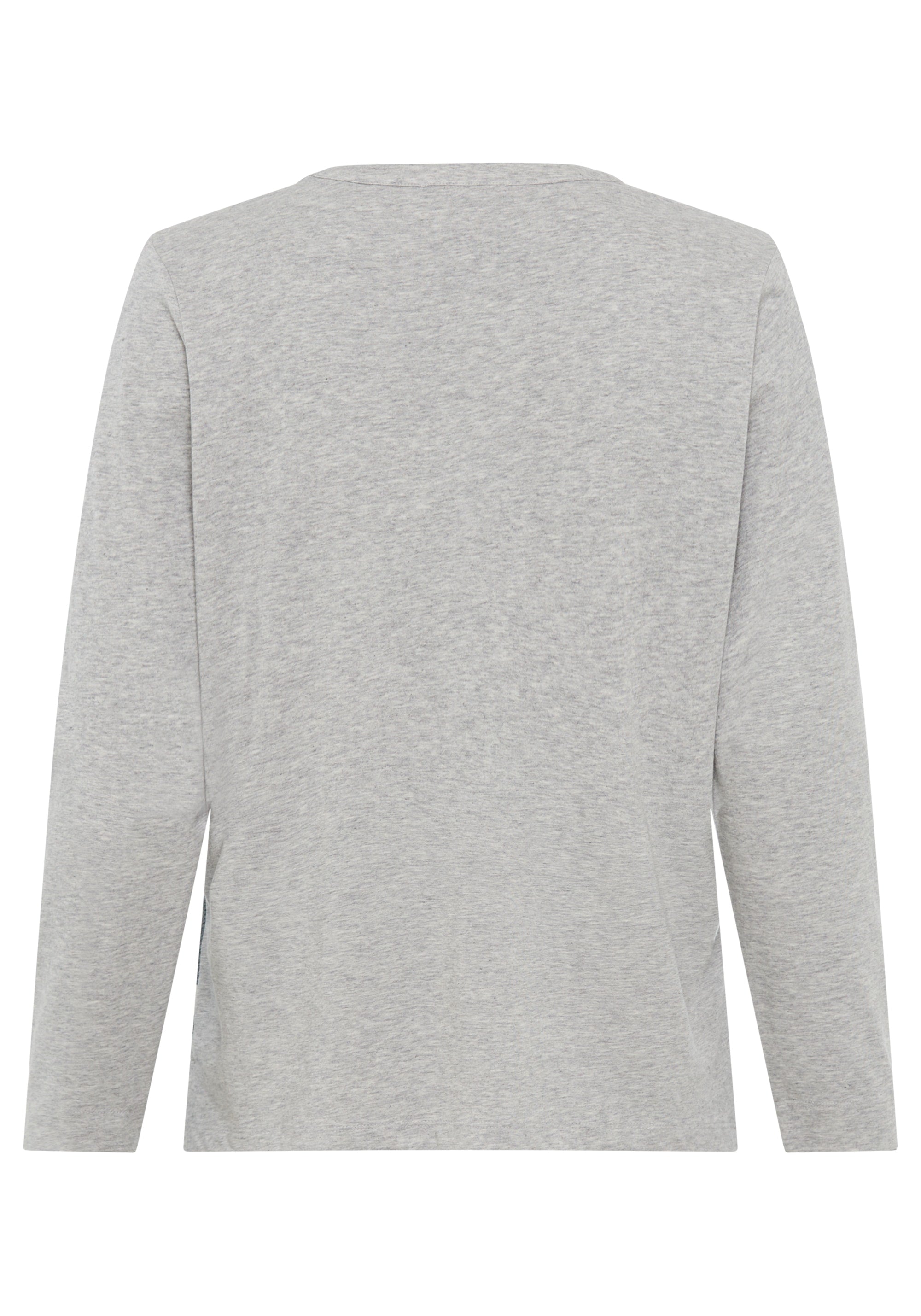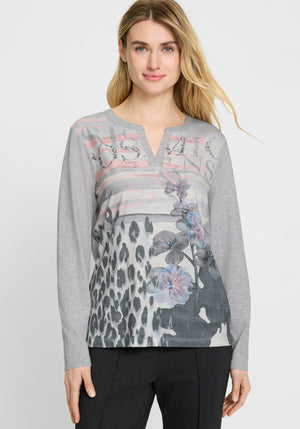 This cotton blend t-shirt is lightweight and airy, featuring a striking mixed motif design on the front that makes a bold statement.
