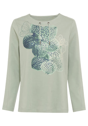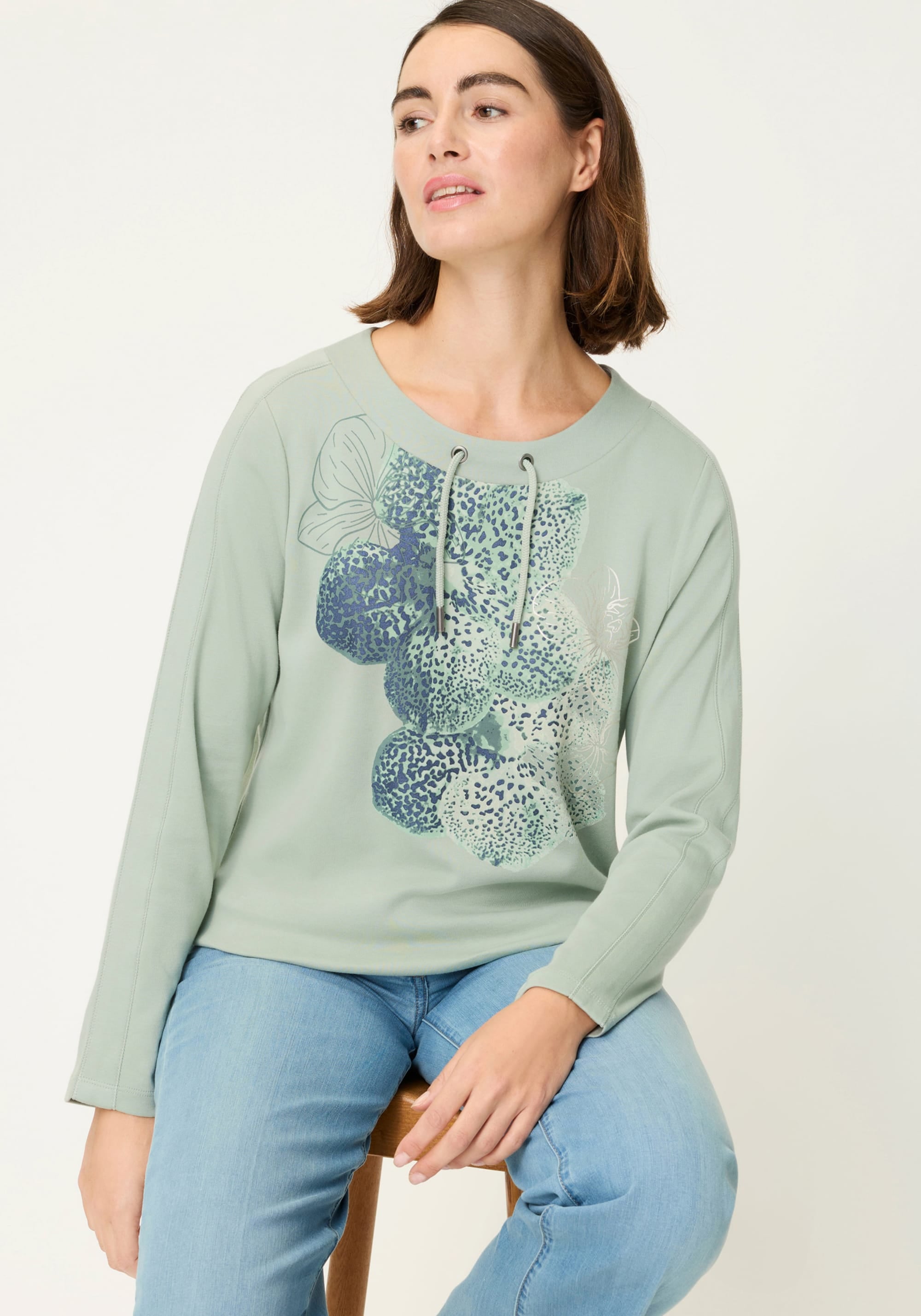 A stylish refresh for off-duty days, this sweatshirt elevates your leisure look with a modern placement print accented by shimmering floral foil details.