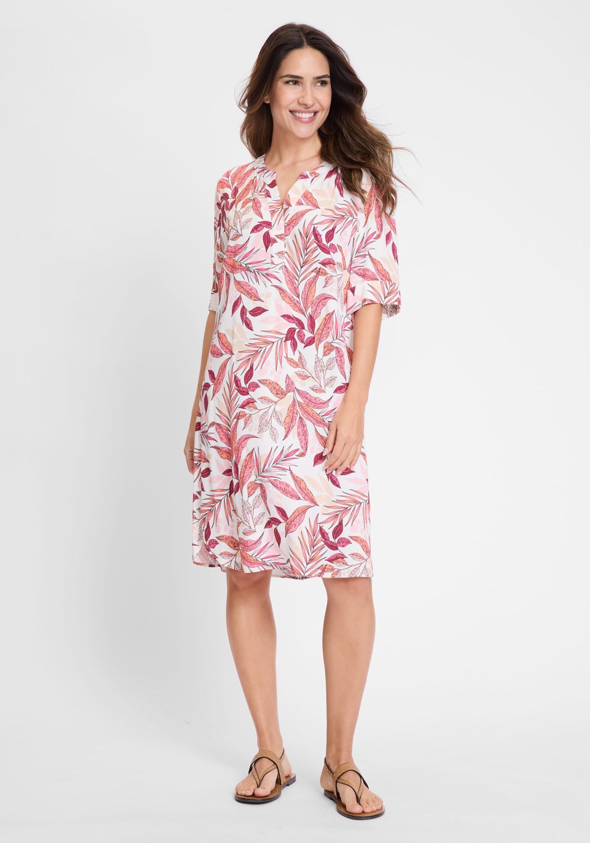 This dress features a striking leaf print in unexpected warm tones, making it a true artsy standout.