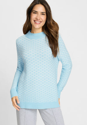 Cozy yarns and a modern stitch interest pattern come together in this stylish midweight sweater.