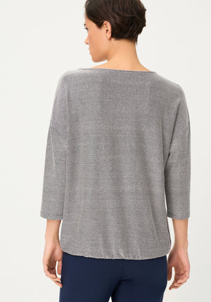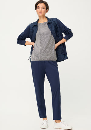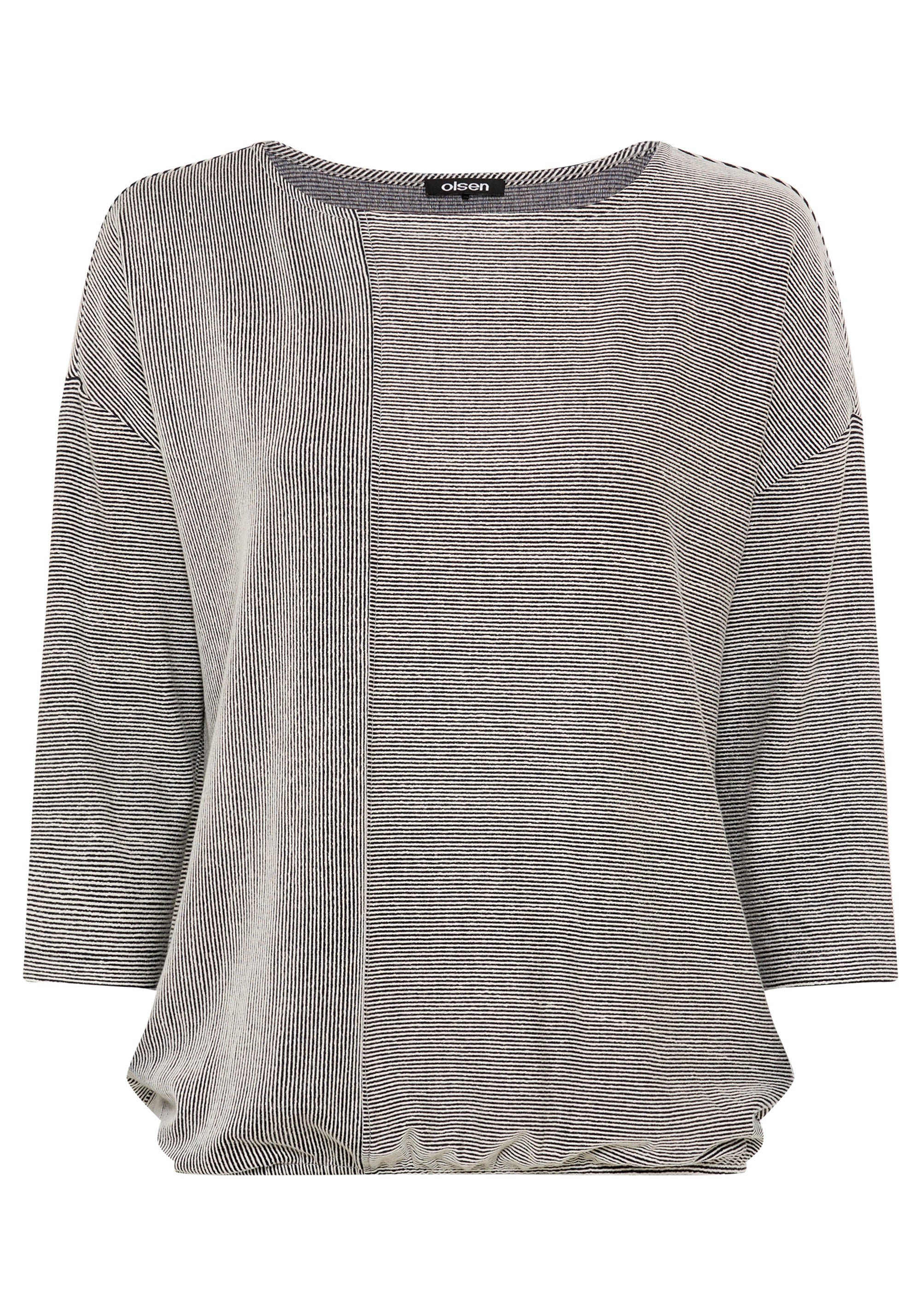 A modern statement T-shirt that stands out with an eye-catching stripe pattern, mixing horizontal and vertical lines for fresh visual interest.