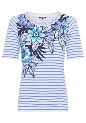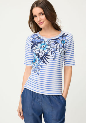 A dynamic mix of stripes and fluid florals gives this T-shirt eye-catching depth, with finely tuned decorative elements adding a stylish accent.