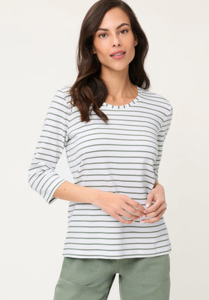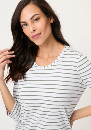 A modern everyday classic, this finely striped T-shirt adds fresh movement and effortless style to your wardrobe.