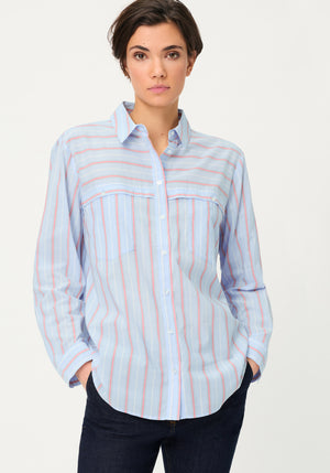 A timeless modern blouse, this style pairs a clean stripe design with a classic shirt collar for an effortlessly polished look.