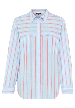 Une blouse moderne et intemporelle qui associe un motif à rayures net à un col chemise classique pour une allure soignée sans effort.