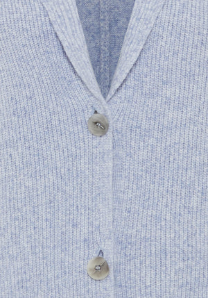 A button front cardigan with soft melangé yarns that create a 2-tone effect.
