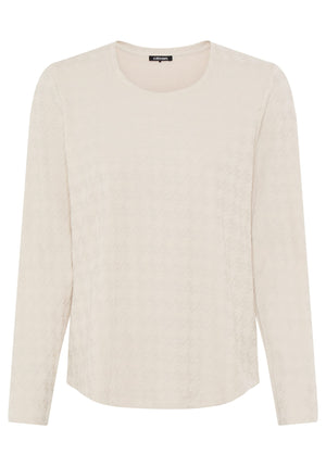 This t-shirt is elevated by an allover tonal textured houndstooth pattern and offers a dressier take on a classic basic.
