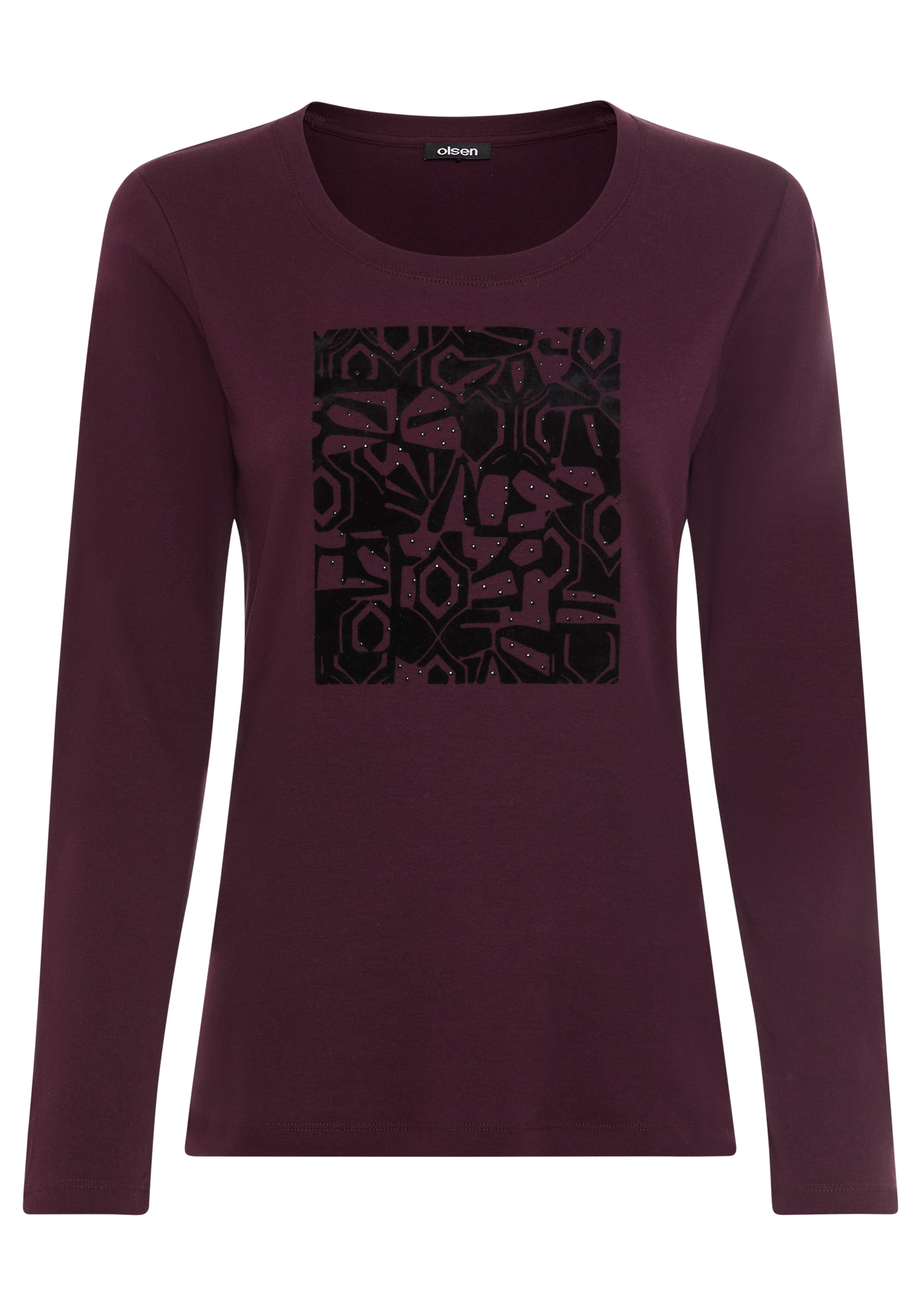 A chic scoop neck t-shirt elevated with an abstract front placement design for a modern touch.