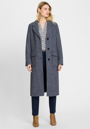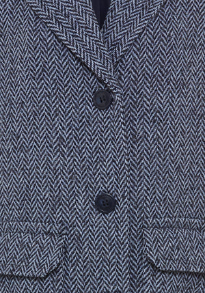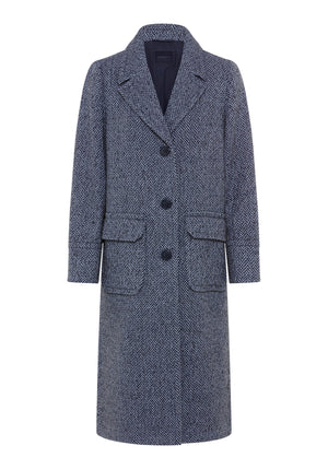 This longline coat is luxurious and elegant featuring a classic herringbone pattern.